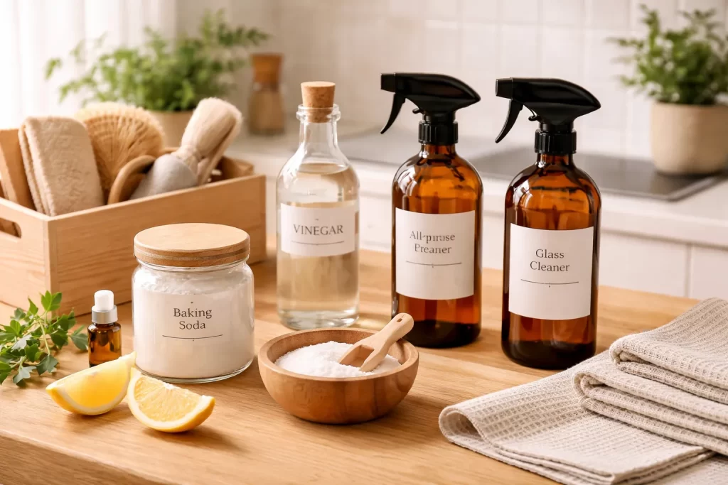 Sommige mensen kiezen ervoor om zelf schoonmaakmiddelen te maken met eenvoudige ingrediënten zoals azijn en baking soda.